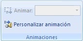 - Personalizar Animacion: Abre el panel de tareas de personalización Personalizar animación para animar objetos individuales en la diapositiva.